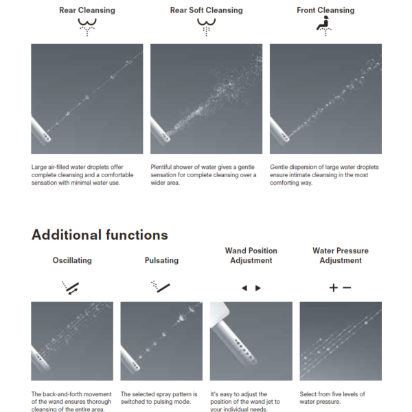 What's new: a seamless, easier-to-clean seat ring. It's also possible to easily remove WASHLET™ from the toilet bowl for thorough cleaning. Another innovation in this model is the use of a silicone-based material for WASHLET™ itself, which makes it more difficult for dirt to accumulate (so-called "Clean Case").